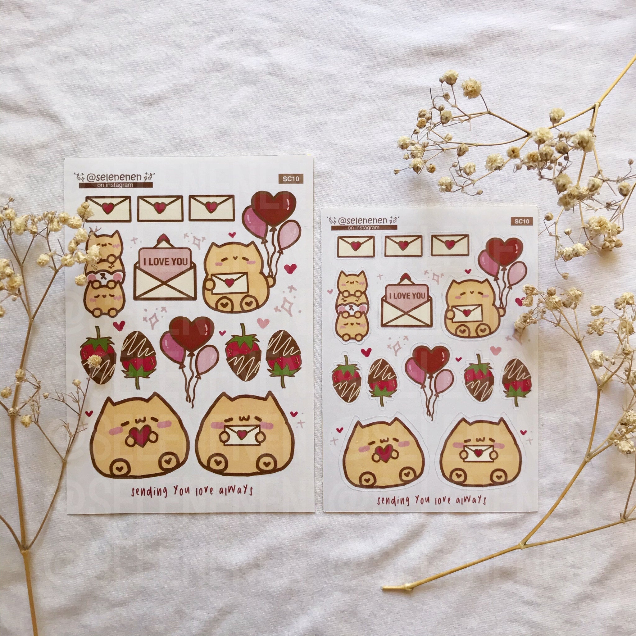• one of each available sticker sheet design from the valentines collection